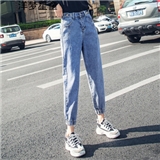 洋梦星童牛仔裤女小脚九分裤2020夏季新款韩版高腰显瘦女裤哈伦裤潮 5995浅蓝色【束脚】 M100斤左右