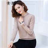 素荨针织衫女短款秋装2020年新款薄款毛衣宽松长袖打底衫蕾丝上衣 浅杏0856 M