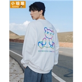 小棕猴 长袖圆领卫衣男秋季宽松白色炫彩反光潮牌小熊2020新款长袖T恤男宽松潮ins港风情侣卫衣男 G3045本白色 L