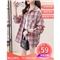 得听衬衫女2020秋装新款磨毛棉格子衬衫女秋夏季复古港味学生宽松休闲通勤百搭大码纯棉上衣女长袖外套 粉色格子(9号) M(100-115斤)