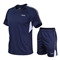 休闲运动套装男装夏季速干衣服足球训练服宽松短袖五分裤跑步两件套 刑释夏服