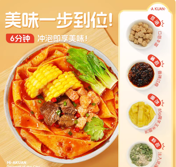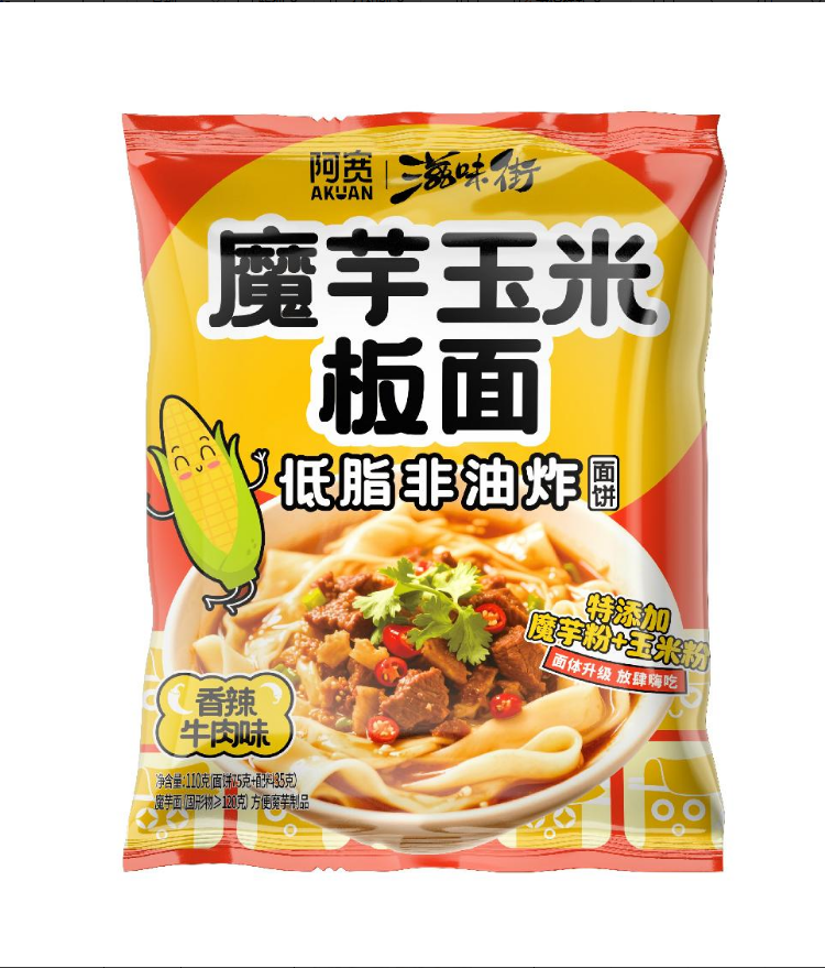阿宽香辣牛肉味魔芋玉米板面110g(低脂非油炸) |