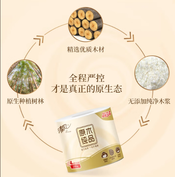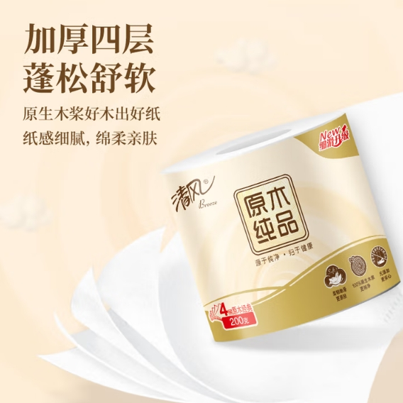 清风原木金装加厚4层卷纸200g |