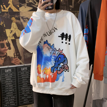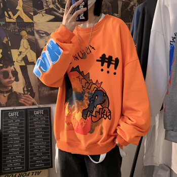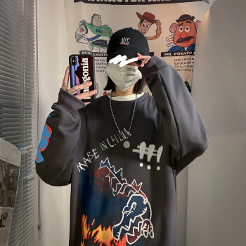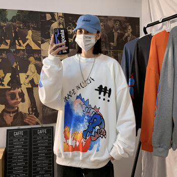 潮至 卫衣男圆领2020年春秋季新款韩版潮流男士长袖T恤春装上衣大码外衣 牛仔蓝 S |