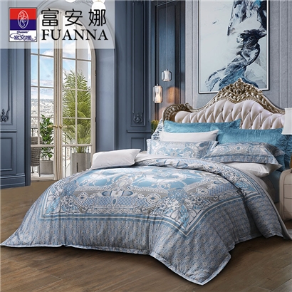 伊亚 床单四件套(被套1件床单1件枕套2件)(适合1.5米床)【100支长绒棉/蓝】 |