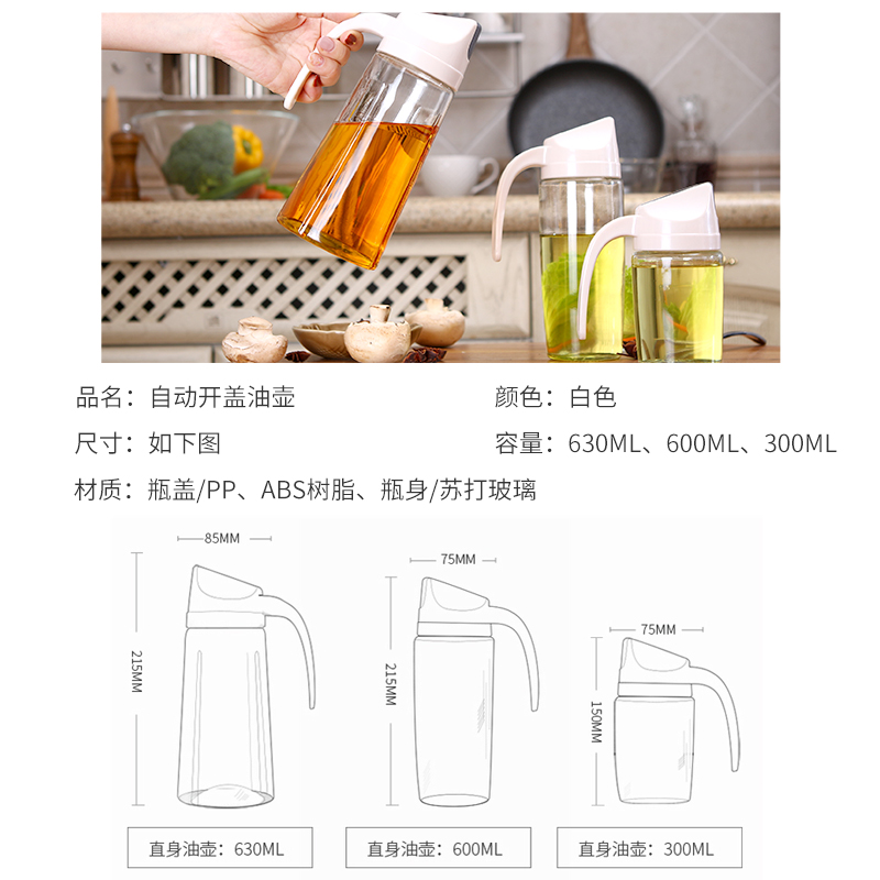 自动翻盖调味瓶3件套【瓶盖PP+ABS树脂/瓶身苏打玻璃/白色】 |