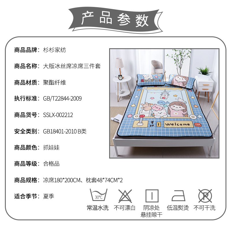 大版冰丝席凉席三件套【聚酯纤维/抓娃娃】 |