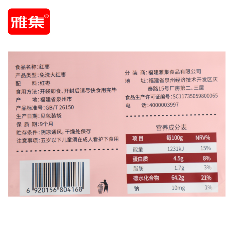 雅集红枣500g*10袋 |