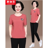 惠珈芸中老年女装夏装两件套短袖T恤上衣洋气2020新款简约时尚减龄阔太太运动装女大码宽松妈妈装套装 皮红色(7分裤) 此码勿拍.请拍自身对应码数