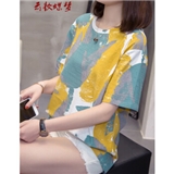 云妆蝶梦短袖t恤女大码女装棉麻2020新款夏季学生t恤卫衣显瘦减龄宽松半袖上衣女 黄色 L(建议90-120斤)